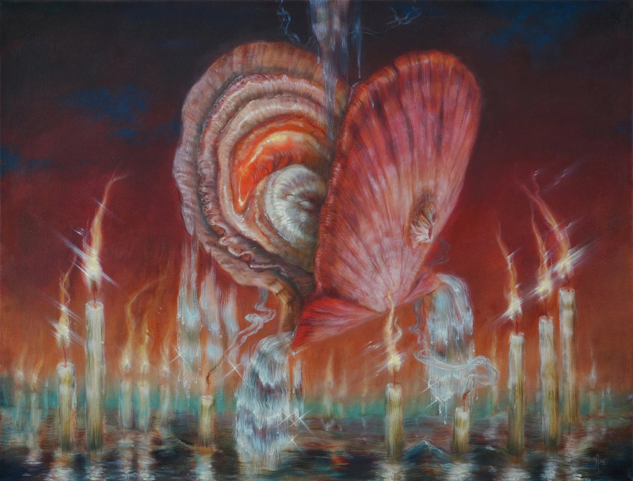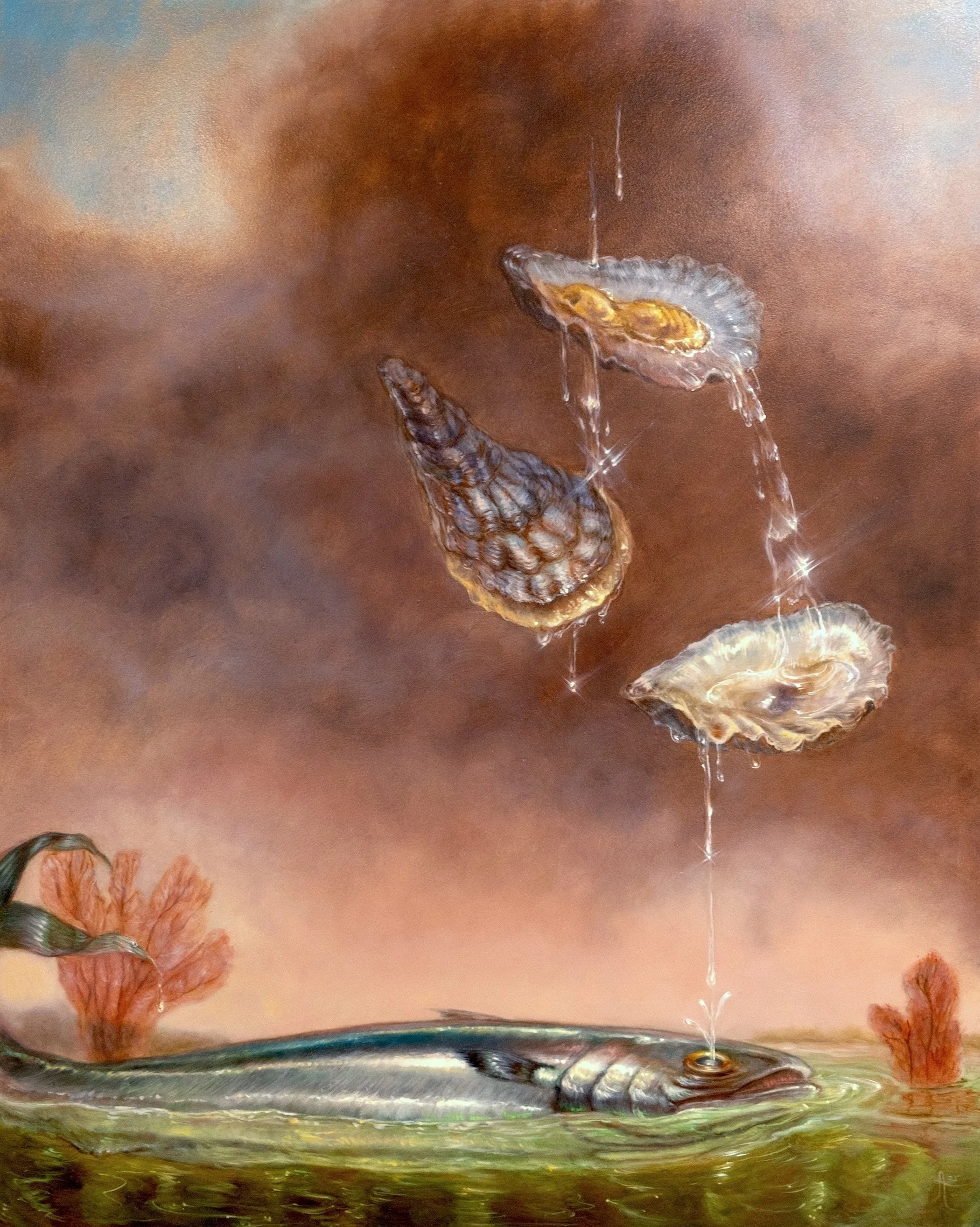 ‘Three Oysters and A Fish ‘ Oil on panel 16” x 20”